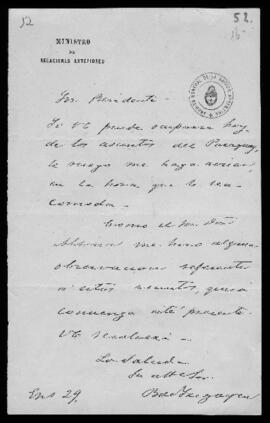 Sin restricciones de orden legal. En todos los casos, le usuarie AGN se compromete a citar la fuente conforme el siguiente aviso legal: "Este material se encuentra bajo la guarda y custodia del Archivo General de la Nación, formando parte de su acervo." Se deberá citar la documentación siguiendo las pautas definidas por el AGN. En el caso de utilización de documentos en audiovisuales se deberá consignar el siguiente aviso legal en los créditos junto con el logotipo del Archivo General de la Nación: "Esta producción utiliza material que se encuentra bajo la guarda y custodia del Archivo General de la Nación, formando parte de su acervo".